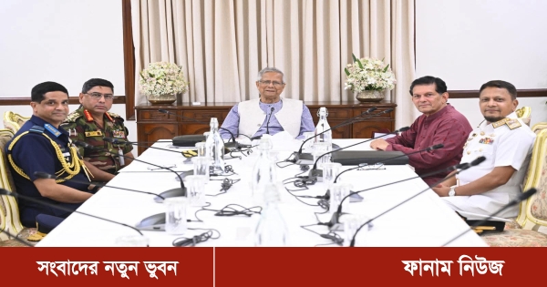 শনিবার সন্ধ্যা ৭টার দিকে রাজধানীর রাষ্ট্রীয় অতিথি ভবন যমুনায় প্রধান উপদেষ্টার সঙ্গে সাক্ষাৎ করেন সেনাবাহিনী প্রধান জেনারেল ওয়াকার-উজ-জামান, নৌবাহিনী প্রধান অ্যাডমিরাল মোহাম্মদ নাজমুল হাসান এবং বিমানবাহিনী প্রধান এয়ার চিফ মার্শাল হাসান মাহমুদ খান। বৈঠকে জাতীয় নিরাপত্তা উপদেষ্টা ড. খলিলুর রহমান উপস্থিত ছিলেন।