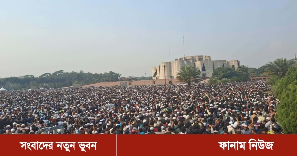 কয়েক লাখ মানুষের অংশগ্রহণে জাতীয় সংসদ ভবন এলাকায় ইনকিলাব মঞ্চের মুখপাত্র শহীদ শরিফ ওসমান হাদির জানাজা অনুষ্ঠিত হয়েছে। জানাজায় অংশগ্রহণকারীরা বলছেন, এটাই স্মরণকালের সবচেয়ে বড় জানাজা। জানাজায় অংশগ্রহণকারী অনেকেই বলছেন, শহীদ ওসমান হাদির জানাজায় ৭ থেকে ৮ লাখ মানুষ অংশ নিয়েছেন।