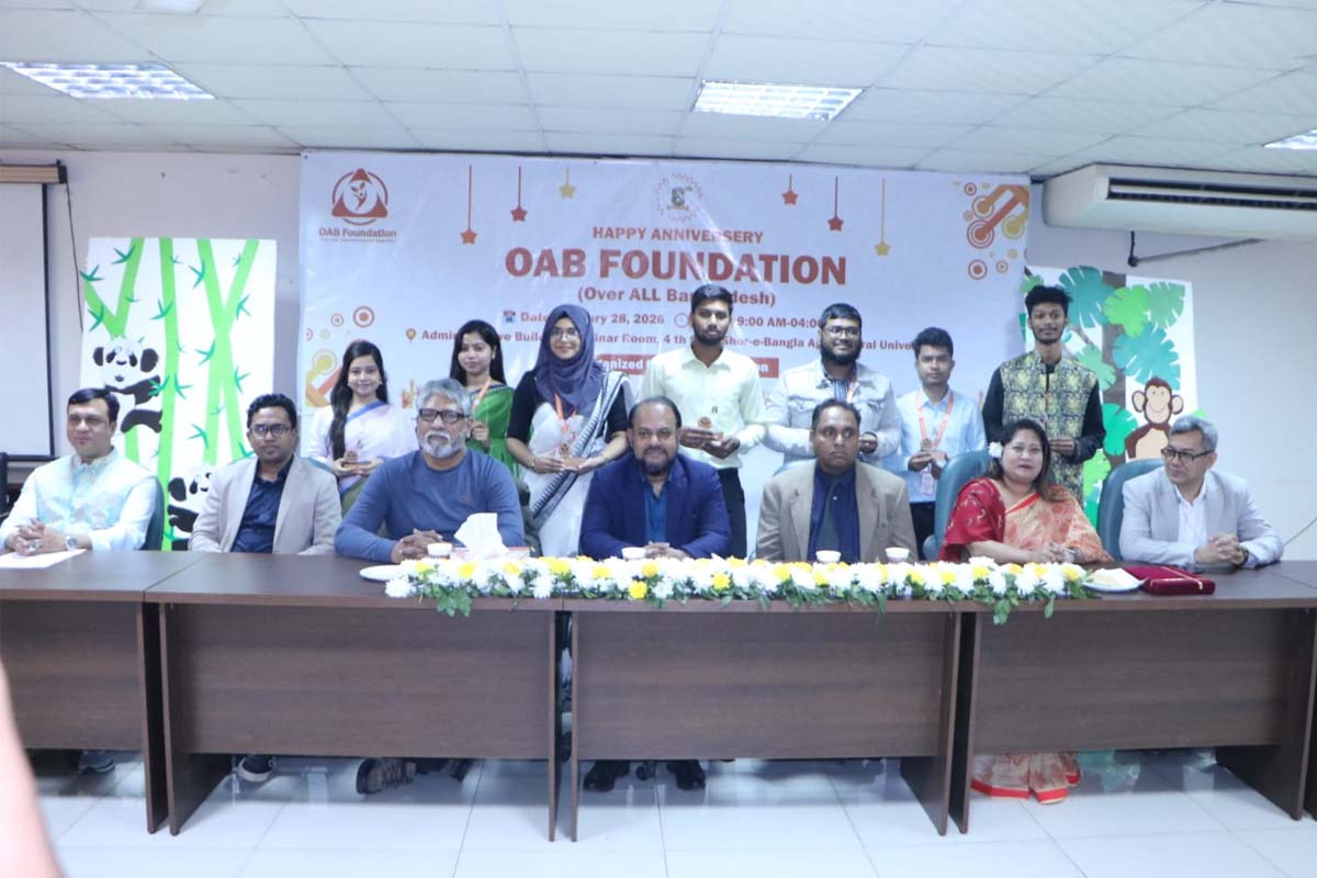 যুব নেতৃত্বাধীন অলাভজনক সংগঠন ওভার অল বাংলাদেশ ফাউন্ডেশন (ওএবি ফাউন্ডেশন)-এর ৮ম প্রতিষ্ঠাবার্ষিকী উপলক্ষে ঢাকার শেরেবাংলা কৃষি বিশ্ববিদ্যালয়ের প্রশাসনিক ভবনের সেমিনার কক্ষে এক দিনব্যাপী আলোচনা সভা, সম্মাননা প্রদান ও সাংস্কৃতিক অনুষ্ঠানের আয়োজন করা হয়।