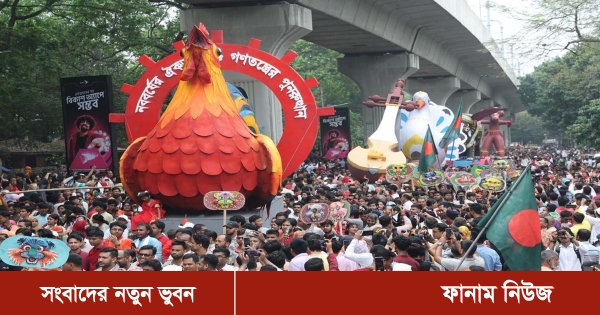 ‘নববর্ষের ঐকতান, গণতন্ত্রের পুনরুত্থান’ প্রতিপাদ্যে মঙ্গলবার (১৪ এপ্রিল) সকাল ৯টা ৫ মিনিটে শোভাযাত্রাটি বের করে ঢাকা বিশ্ববিদ্যালয়ের চারুকলা অনুষদ।